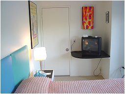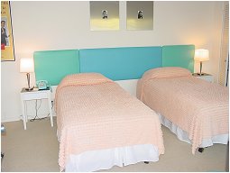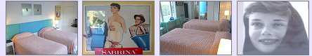 Audrey Hepburn Room - This fashion icon of the 50's is reflected in the peachy coloured room with bobble chenille bedspreads and photographs. This room can be used with twins or a king bed.