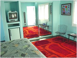 Bertoia chairs and artwork by Fernand Leger. This poolside room has a panoramic view of the