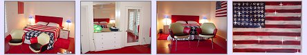 This poolside room celebrates this famous American Artist with an American Flag painting and