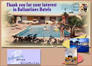 | Vintage Postcards - Palm Springs - Ballantines Hotel | 800-485-2808 |